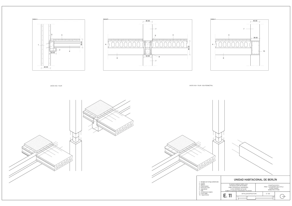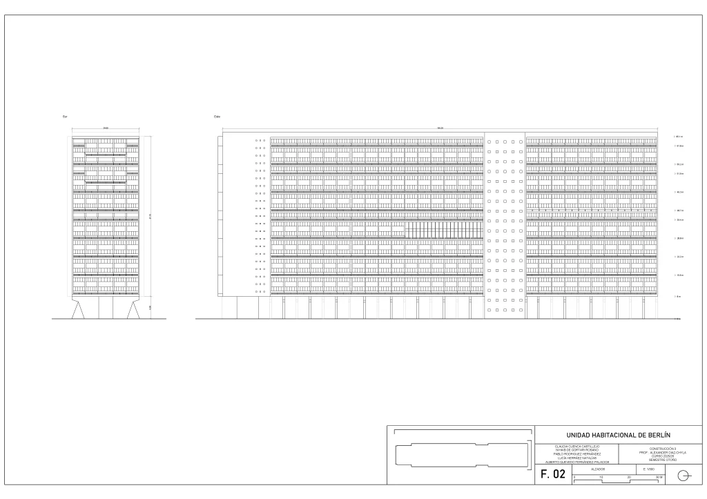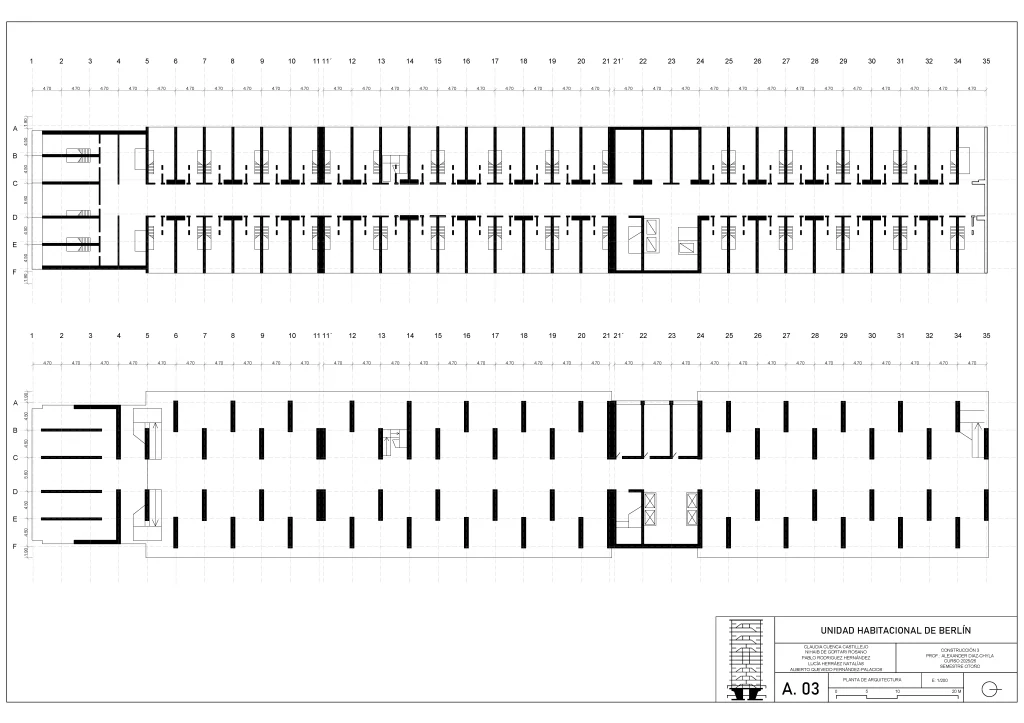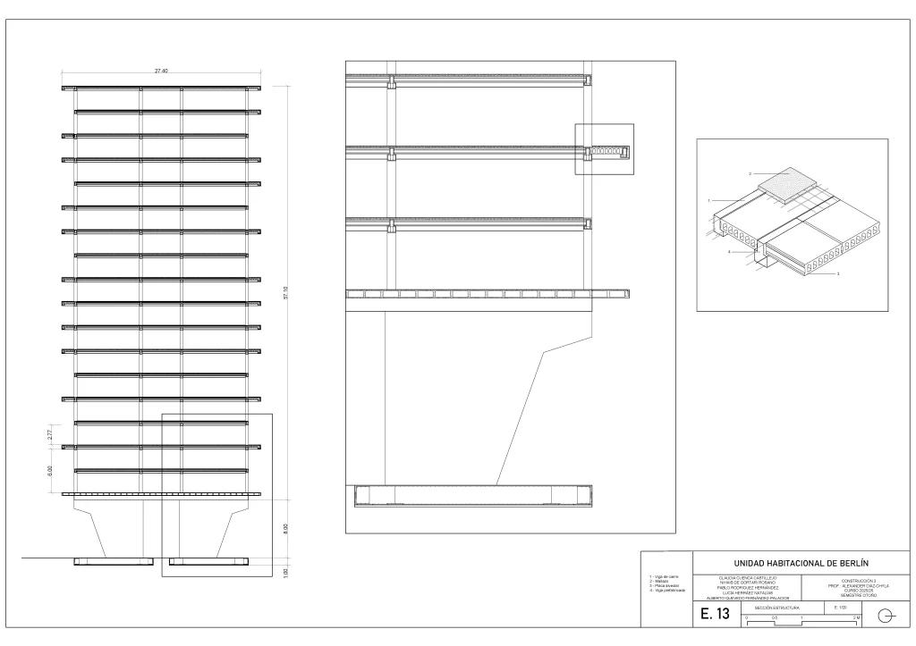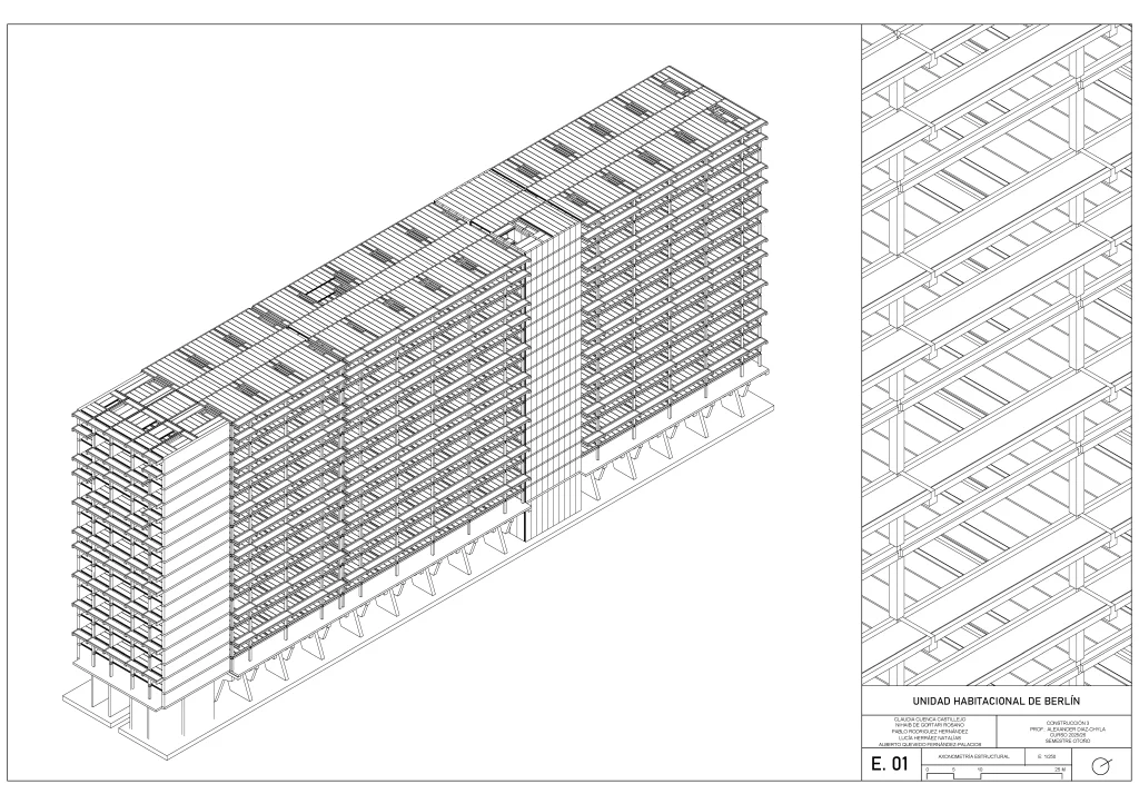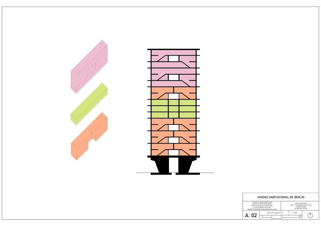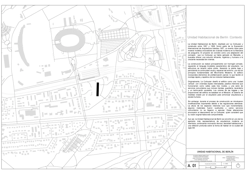 La Unidad Habitacional de Berlín, diseñado por Le Corbusier y construido entre 1957 y 1958, formó parte de la Exposición Internacional de Arquitectura Interbau 1957, un evento clave para mostrar modelos innovadores de vivienda moderna en la Alemania de posguerra. El proyecto se concibió como una adaptación del concepto que Le Corbusier ya había aplicado en Marsella, y buscaba ofrecer una solución eficiente, higiénica y humana a la creciente necesidad de vivienda. La construcción se realizó principalmente con hormigón armado, la estructura se levantó sobre pilotis, liberando la planta baja y permitiendo la continuidad visual y espacial del entorno, uno de los principios fundamentales del Movimiento Moderno. El edificio incorporaba elementos de prefabricación parcial, lo que facilitó el montaje rápido y repetitivo de los módulos habitacionales. Originalmente, Le Corbusier diseñó el edificio como una “ciudad vertical”, con viviendas dúplex intercaladas, pasillos interiores que funcionarían como calles cada tres niveles, y una serie de servicios comunitarios que incluían tiendas, guardería, lavandería y un techo-jardín accesible. Los colores de las loggias y las proporciones del edificio se basaban en el Modulor, el sistema de medidas creado por el arquitecto para armonizar arquitectura y escala humana. La Unidad Habitacional de Berlin se convirtió en uno de los ejemplos más representativos de arquitectura moderna en Alemania, combinando innovación técnica, densidad habitacional y una reflexión profunda sobre la forma de habitar en la ciudad del siglo XX.
